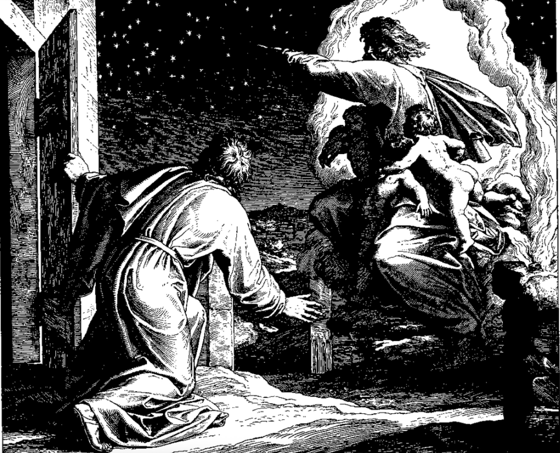 Now, at this, God would have been justified in giving Abram a smackdown. But it’s now that God speaks not the Law to Abram, but the other Word God speaks to needy sinners like Abram…and you and me. God speaks words of promise, what we call Gospel, good news. “This man [Eliezer] will not be your heir,” God says, “but a son who is your own flesh and blood will be your heir.” Then God takes Abram outside and God tells Abram, “Look up at the sky and count the stars—if indeed you can count them….So shall your offspring be.” (Genesis 15:5)